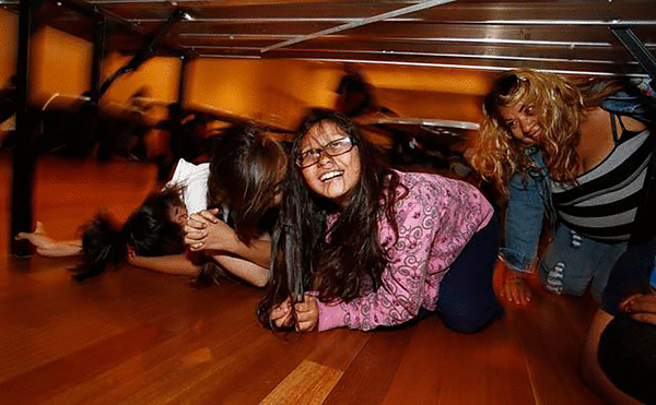 “It’s about making yourself a smaller target,” he said. “Get down on the ground before you are knocked down. Cover your head and neck. Most injuries come from falling and flying objects.”
