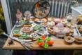 Morales’ $30 cakes are adapted from biscuit recipes and frosted with mashed potatoes that are naturally dyed with spirulina and beets or pumpkin. To decorate, Morales prefers to press edible flowers or fruit chips on the sides. Her homemade aesthetic is deliberate.