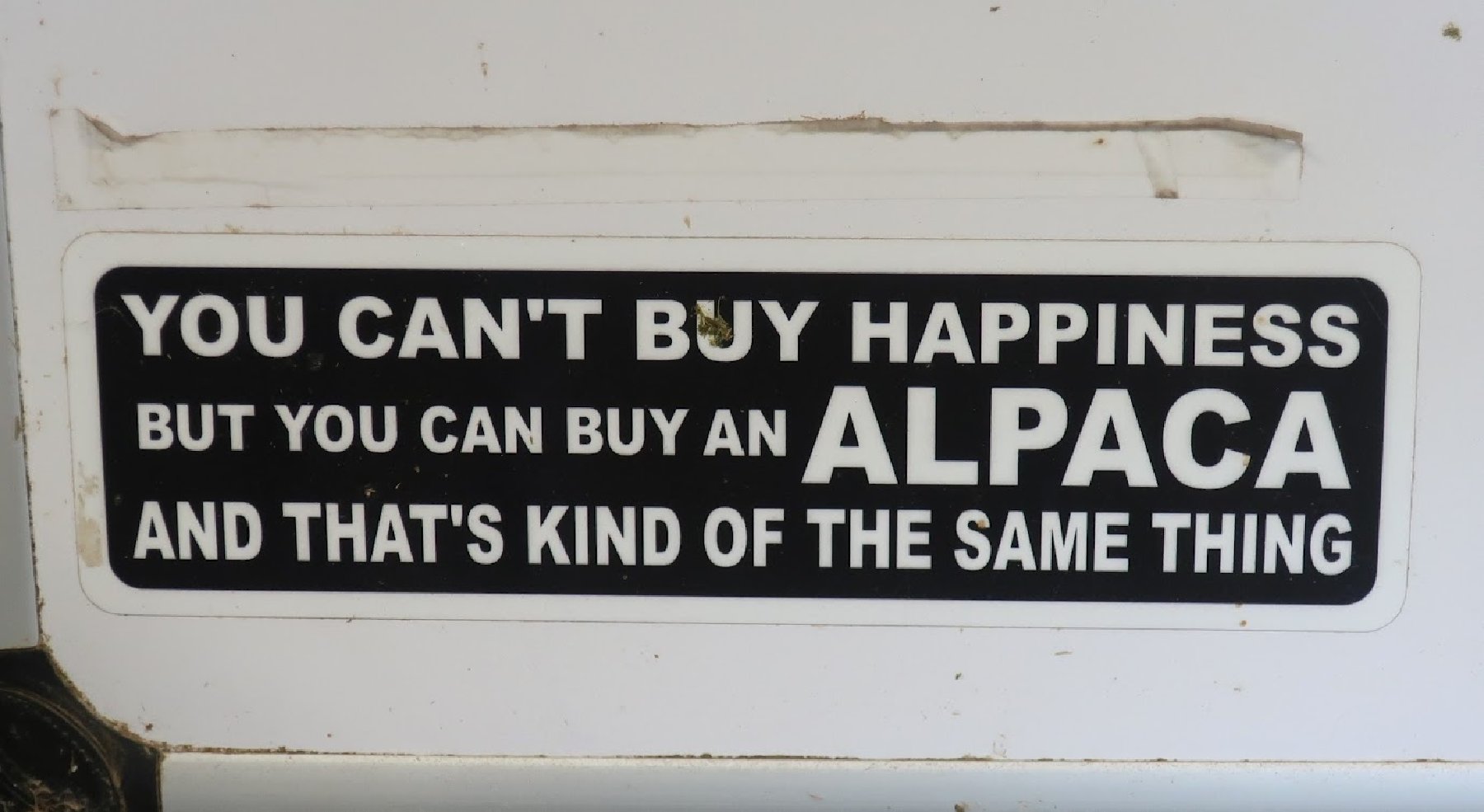 Driving through the countryside surrounding Ithaca, New York, recently I gave in to my curiosity and turned down a driveway beside a placard bearing this message: "You can't buy happiness but you can buy an alpaca, and that's kind of the same thing." While I didn't end up purchasing one of those adorable creatures, I did return home with a fuzzy scarf, soft socks and stuffed animals made of alpaca fur for my grandchildren.