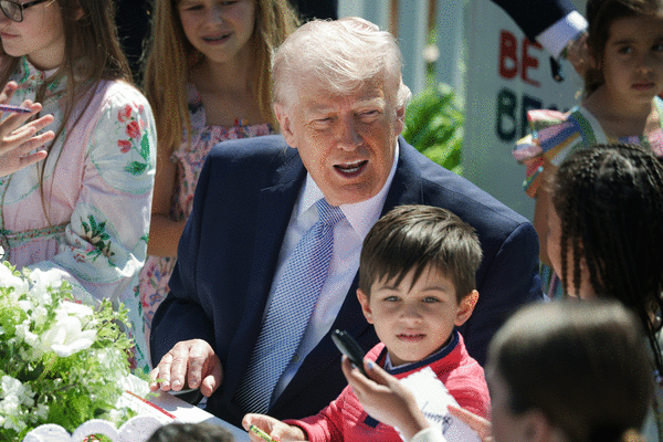 All of this reached darkly comic proportions Monday when Trump found himself at a children’s activity station during the Easter Egg Roll on the South Lawn of the White House.