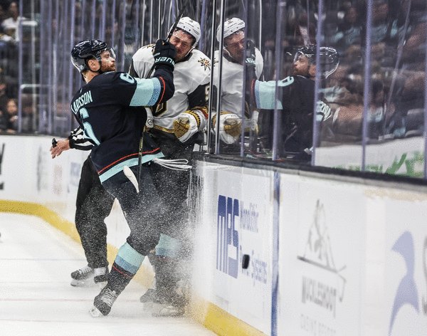 Hutton and Kraken defenseman Brandon Montour each earned five for fighting after a quick, furious bout. It was in response to Montour laying out Zach Whitecloud with an open-ice hit. Montour led with his shoulder, but Whitecloud was off balance, having just touched down after jumping to snag a puck.